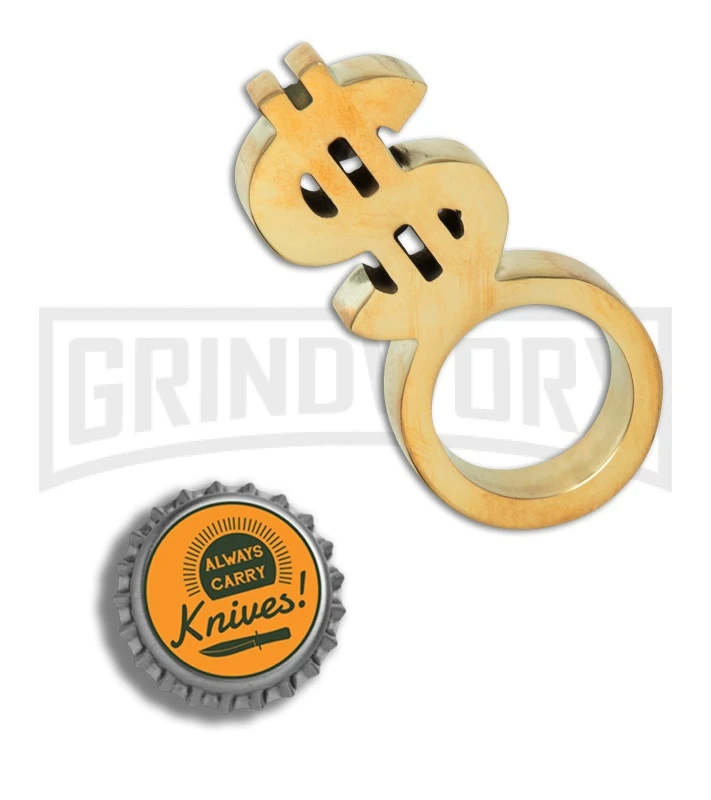 The Pay Up-One 1-finger single knuckle is cut from 1/2 inch thick solid brass and has a dollar sign design.