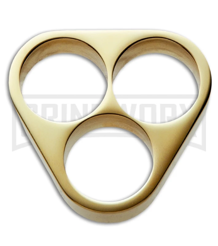 Created in a pyramid shape to represent the prime number 3, this three ring design is made from 1/2 inch thick, solid brass. If features 1″ finger openings, with a highly polished finish.