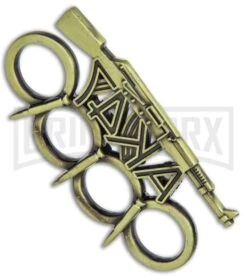 The AK47 steel knuckle with a unique antique bronze finish makes a great fashion accessory, paper weight, or desk item for the office. Show it off to your friends by adding it to your niche collection. You’ll enjoy the weight, feel, and look of this 4-finger knuckle.