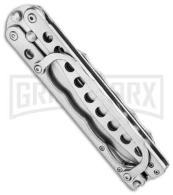 Synthesis Black Folding Trench Knuckle Butterfly Knife – Satin Serr