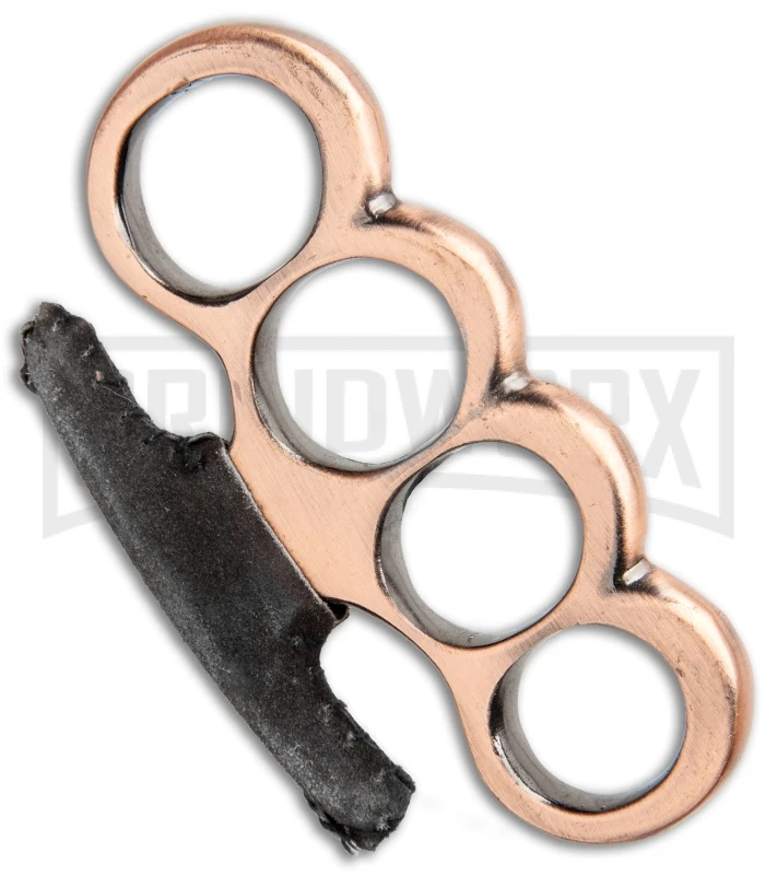 Rugged knuckles with a leather coated palm grip. Solid metal handle (copper color). These are sold for novelty purposes only. They make a great paper weight or desk item (to instill fear in the slackers) for the office. These are not legal to purchase in some locations so be sure to check your local laws.