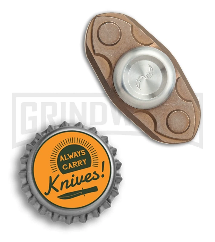 This Ace Spinner features a bronze anodized finish and a stainless steel pivot disc. The Liong Mah Ace Spinner is a fun and compact fidget hand spinner that offers the same quality design and build you would expect from any Liong Mah design. It’s made with solid, durable titanium construction for a lightweight build that is perfect for EDC. The Ace Spinner has a stainless steel ball bearing pivot provides hours of fidget spinning fun.