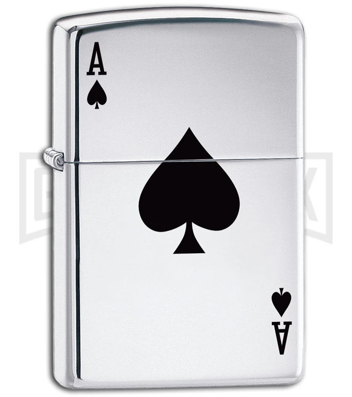 This genuine Lucky Ace Zippo lighter features the Ace of Spades with a super shiny chrome finish. Are you a lucky Ace?