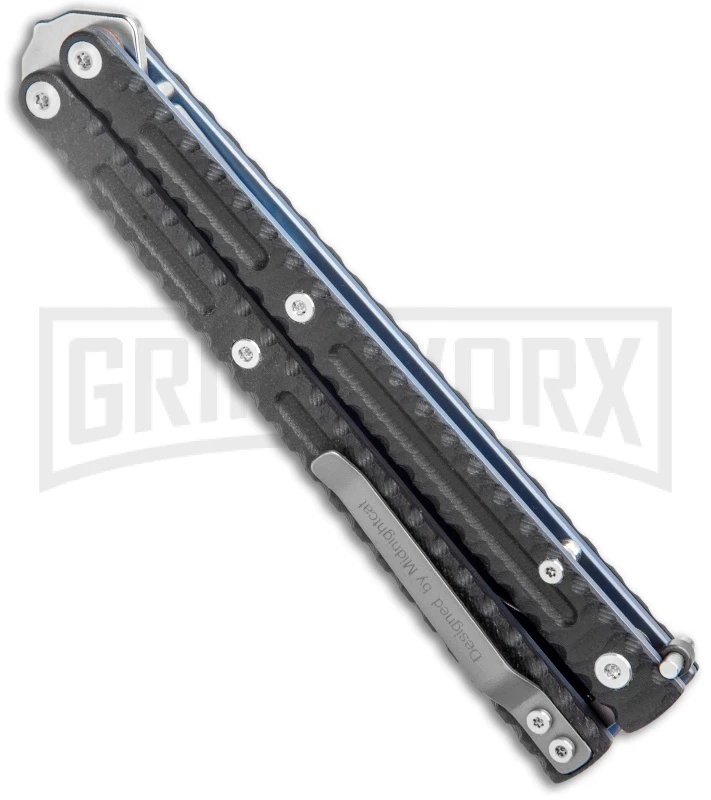The Maxace MidnightCat Obsidian-S is a premium, lightweight butterfly knife built with G-10 handles and a tough and 14C28N blade. The pivots slide smooth and easy with the washers and bushings. The titanium liners permit solid control. Each knife includes a microfiber cloth and a zipper pouch for carrying and storing.