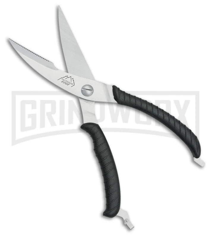 The Outdoor Edge Game Shears are great for processing game on your next hunt. It has 420 stainless steel blades and black TPR handles. It features spring action and a special bone breaking notch. Item comes with a black nylon belt sheath.