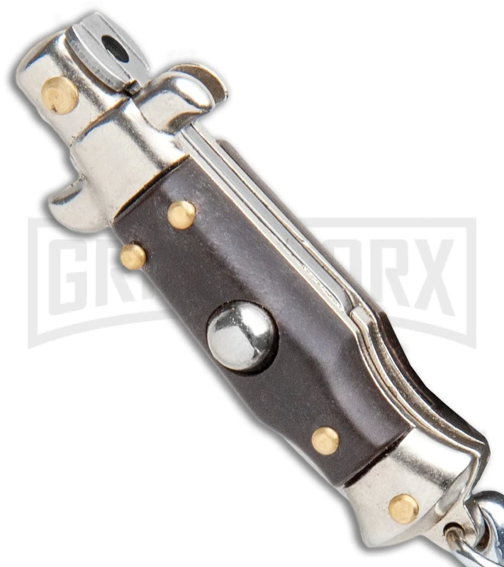 Super cool key chain stilettos really work. Made in Italy. Brown acrylic handles. These are very small! The perfect gift idea for anyone who loves Italian knives.