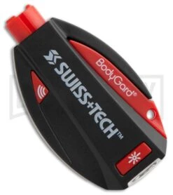For when doors or windows fail to operate due to vehicle damage, fire or submersion- escape with the Swiss Tech BodyGard 5-in-1 Automobile Emergency Tool. Always take your own BodyGard with you. This tool features a spring-loaded glass breaker with instant reset; a seat belt cutter with sharp safety blade; a piercing sonic alarm to signal for help; a bright LED flashlight to light your way; and an emergency red flasher to signal distress. It easily attaches to a key ring or the rear-view mirror post for easy access. It’s made of long lasting steel components and uses 3 replaceable LR44/AG13 alkaline batteries. Includes a key ring.