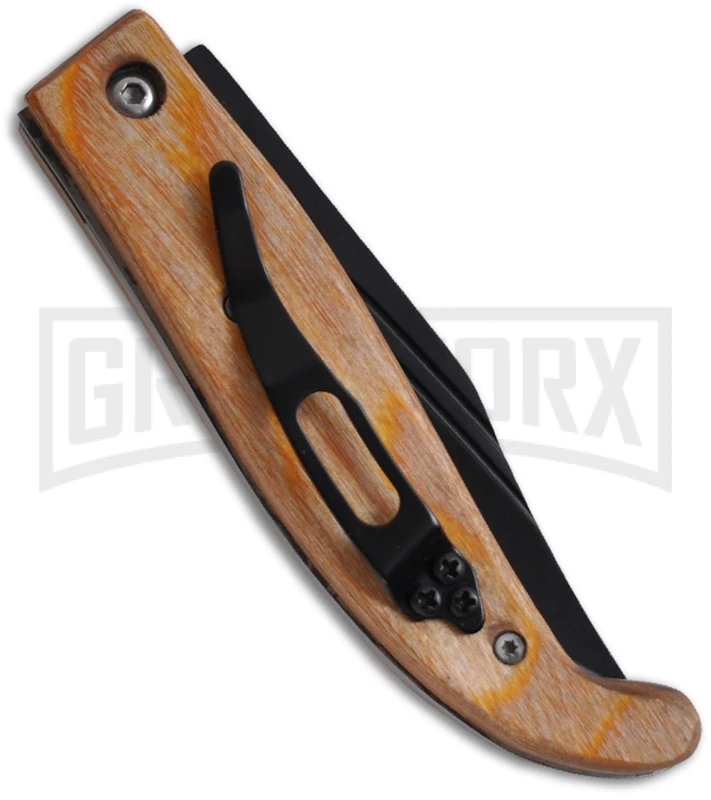 The Tonic series is an excellent dual action knife for the price. It is similar in function to the G-Factor, the blade can be deployed manually (no thumb stud) or with the secret scale release. The Tonic features a stainless steel blade. The handle has wood scales over a stainless liner lock frame and a tip-up carry pocket clip.