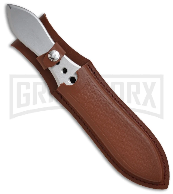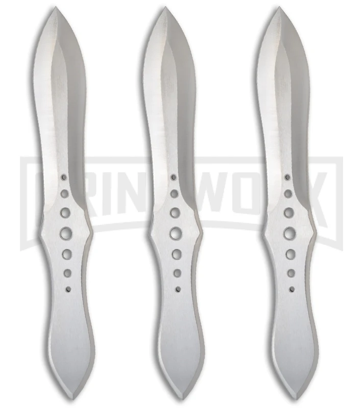 The United Cutlery Competition Triple Thrower Set of knives are designed by Gil Hibben. These throwing knives are made from 420 stainless steel. The blade is marked with “International Knife Throwers Hall of Fame” on the face. Comes with a leather sheath for carry or storage.