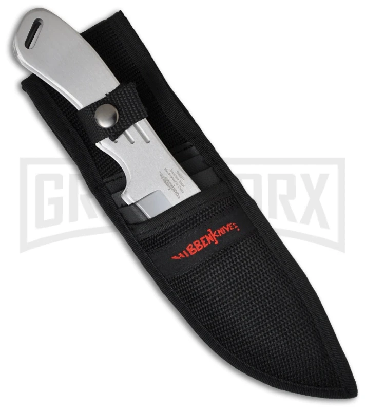 The Gil Hibben Large Pro Thrower Triple Set are made from one-piece of 420 stainless steel. The trigger-grip design helps to guide the knives into the same consistent and accurate release each throw. Includes a nylon sheath for carry or storage.