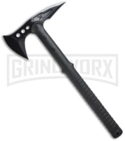 The United Cutlery M48 Hawk is the ultimate tactical weapon. It is lightweight to be carried all day without added muscle fatigue and the blade of the M48 Hawk offers a wide, upswept axe blade for mammoth chopping, slashing and cutting potential. The secondary edge on the back side of the head is specially ground on both edges for a cutting and hooking attack. When combined, the spike and axe head make for an efficient personal defense and breaching tool. The blade is securely attached to the indestructible 30% nylon reinforced handle with three separate bolts. It comes complete with a nylon snap button sheath.