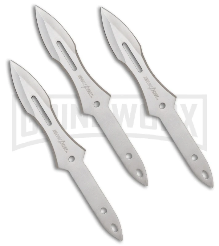 The Perfect Point throwing knives are well-designed and balanced throwers. Stainless steel construction with a satin finish and double-edged blade.