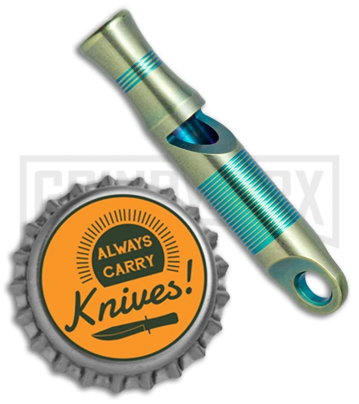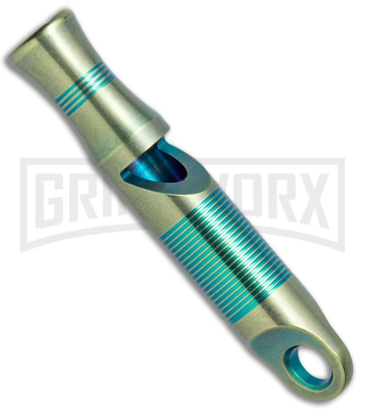The WE Knife A-05 Whistle is the perfect addition to any keychain, pocket, or glove box. It is great for women (and men) who need an alert tool in a time of need for help. Or it is just fun to fidget with or annoy anyone within ears range. It is made of 6AL4V Titanium and has a beautiful blue, green, gold finish.