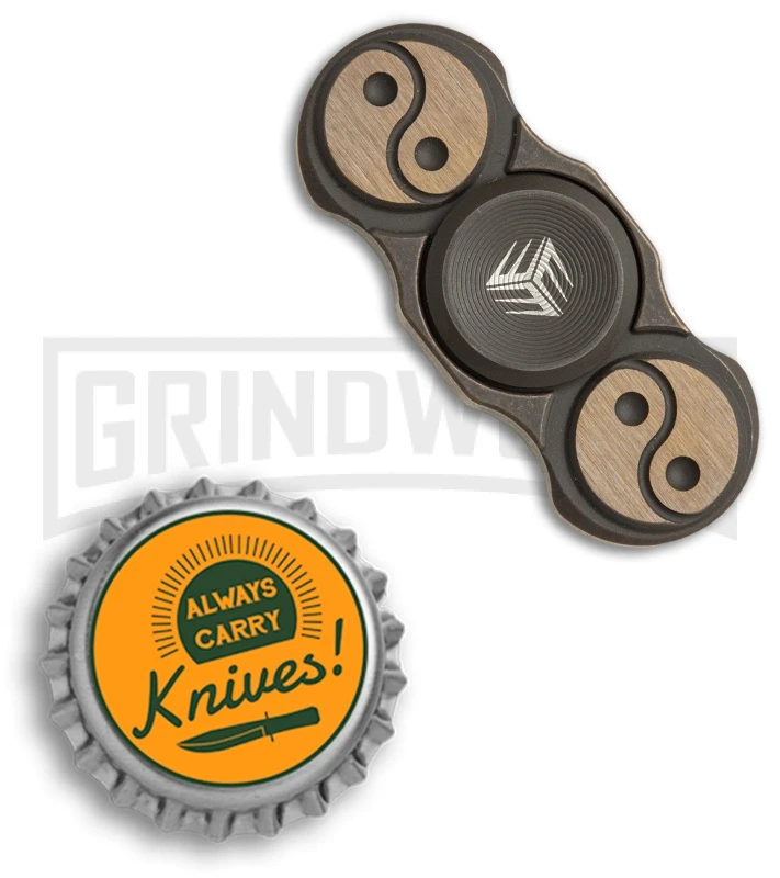 This bronze finished S01 Fidget Spinner by WE Knife Co. offers lightweight titanium construction with a ceramic ball bearing pivot for smooth, extended spin times. Each compact spinner sports a double yin-yang design with an over-sized pivot disc. Comes with a padded aluminum case for safekeeping.
