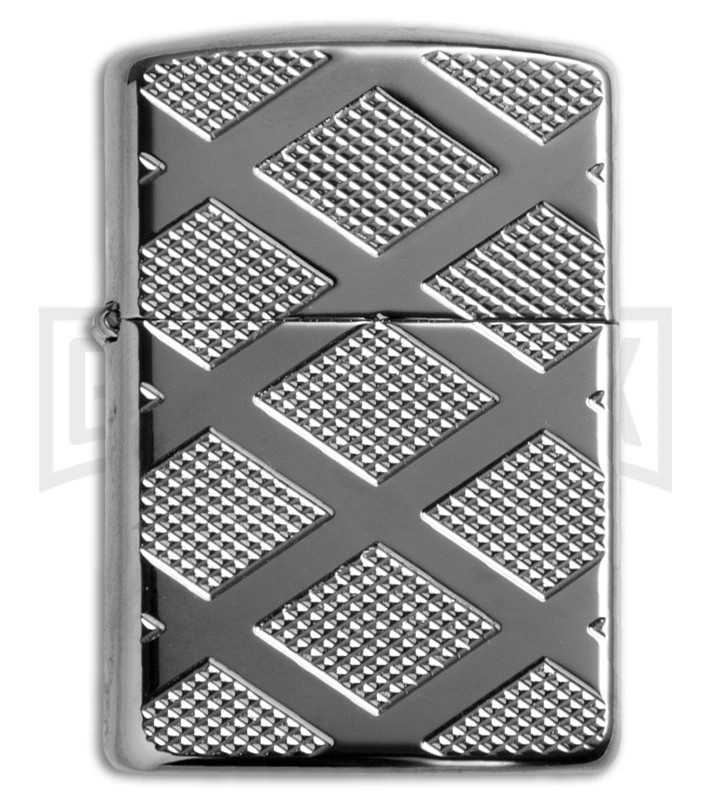 This high-polish chrome Armor™ lighter has an elegant but robust design. This windproof lighter features a unique carved diamond pattern with an etched design making this a one-of-a-kind piece. Comes packaged in an environmentally friendly gift box. For optimum performance, fill with Zippo premium lighter fluid.