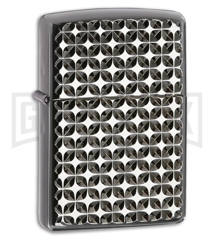 This Zippo lighter features a heavy-wall Armor case with a high-polish chrome finish and an engine turn star pattern.