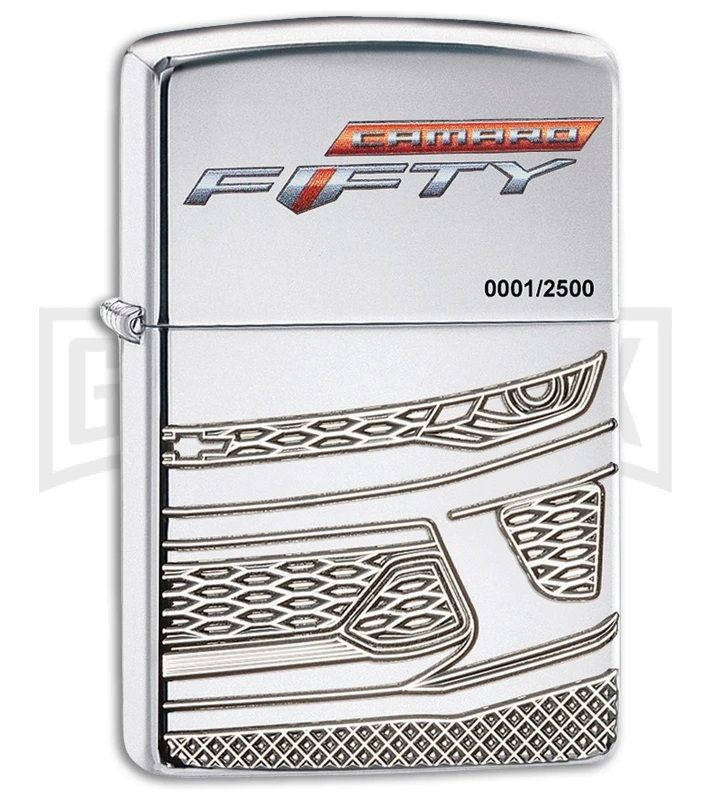 This Zippo lighter has a high polish chrome body that features the grill of a Chevy Camaro engraved. Celebrate the 50th anniversary of the Camaro with this lighter.