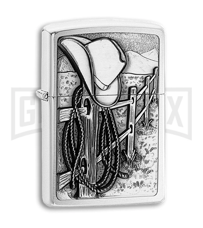 Resting Cowboy emblem on a brushed chrome Zippo case.