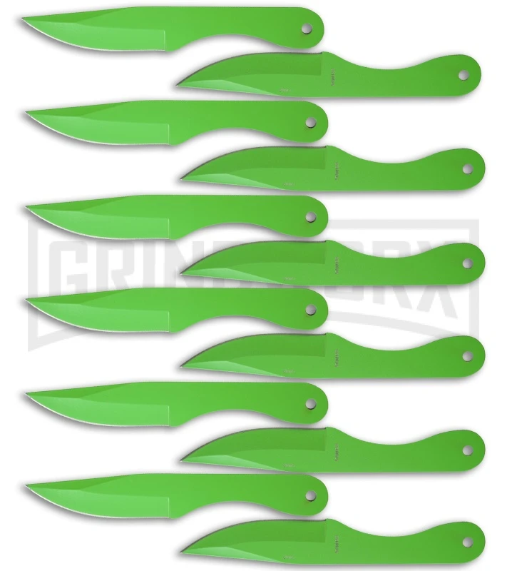 Don’t get caught short when the zombie apocalypse happens. Start practicing now with this set of 12 throwing knives. Solid stainless steel design with the toxic green coating that makes it clear who their intended for. The set comes with its own black nylon case that rolls up for easy storage and carry.